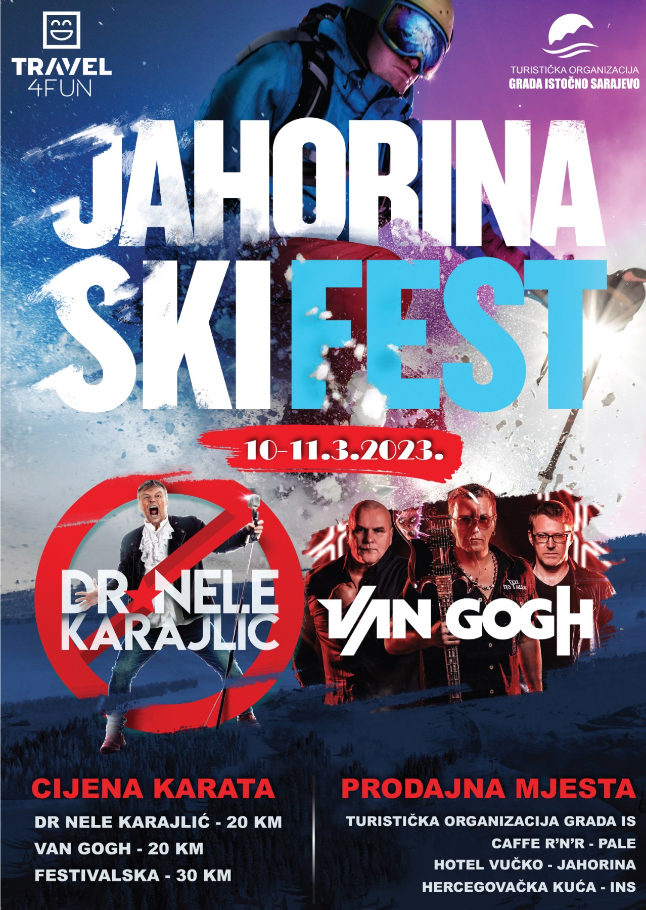 Prvi Jahorina SKI Fest će biti održan od 10. do 12. marta, a posjetioce očekuju koncerti najvećih rock zvijezda regiona. Prvo veče SKI Festa je rezervisano za koncert legendarnog rokera Dr Neleta Karajlića, a u subotu 11. marta svojom energijom publiku će zagrijati bend Van Gogh, koji je najavio i gosta iznenađenja.