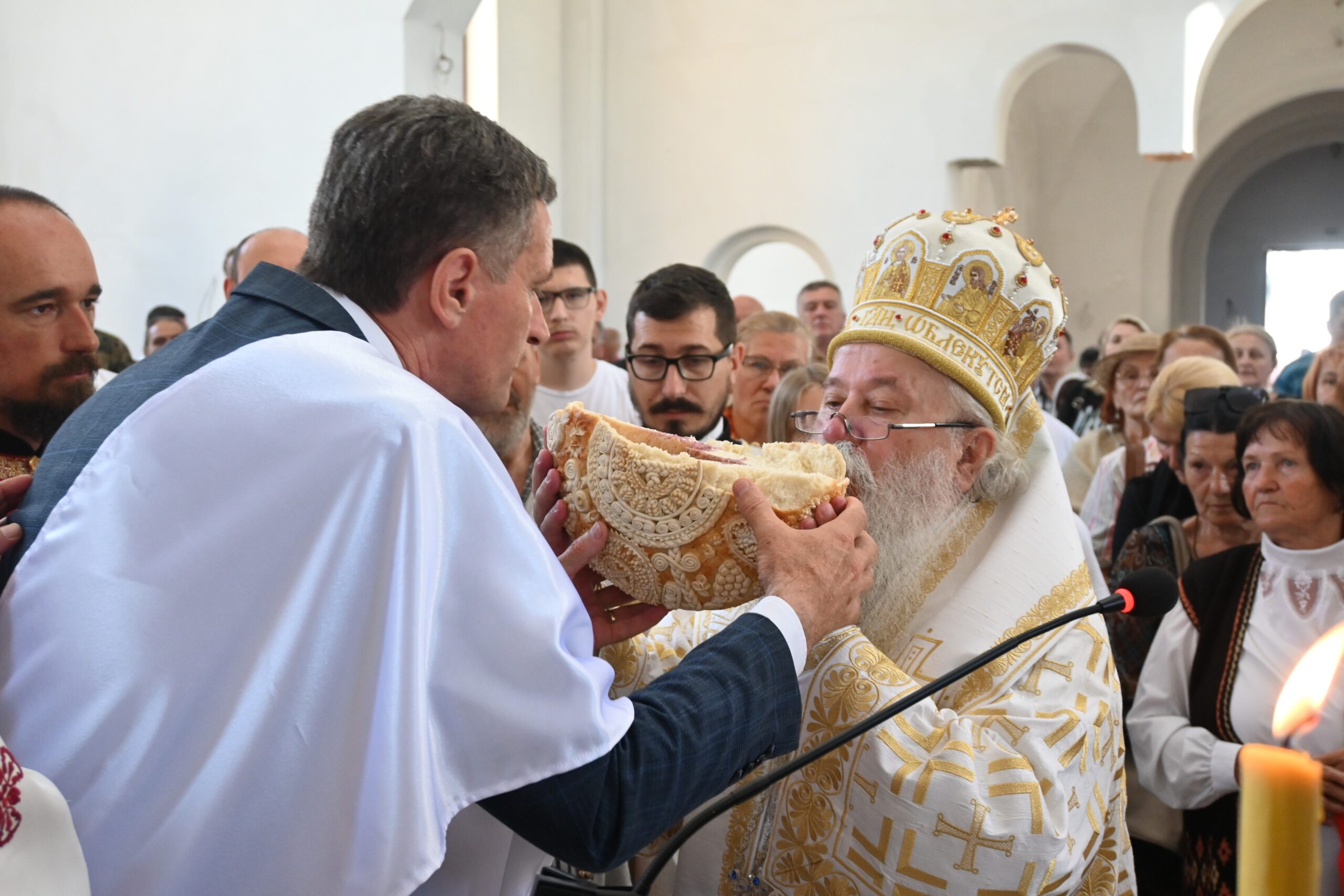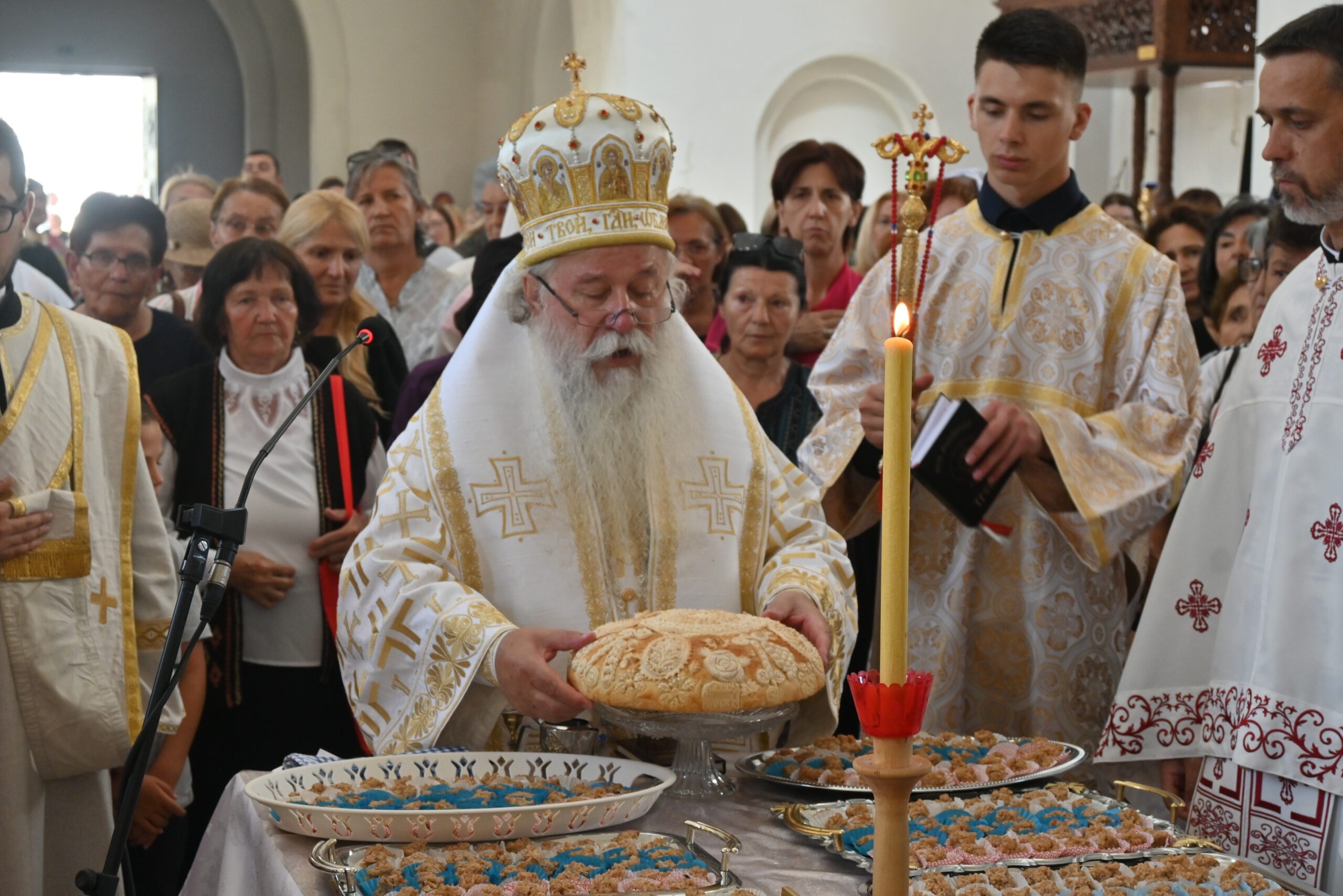 Након литургије обављен је славски обред ломљења крсног колача и послужење на Студентским тргу испред храма.